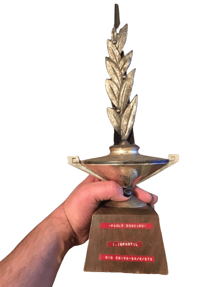 Vistosos são os troféus ganhos em provas desportivas. Primeiro os de pesca, nas categorias de “Infantil” e, depois, de “Adulto” (ainda com 14 anos). Vieram de Angola, e chegaram cá um pouco amachucados, alguns com as etiquetas descoladas, e agora já não me lembro onde ou quando foi a pescaria de sucesso. Hoje, e desde há muito tempo a esta parte, não seria capaz de voltar a pescar por prazer. Quanto aos restantes troféus só surgiram mais tarde, quando] mereci as medalhas e o prémio de equipa de xadrez, um desporto com menos consequências ambientais.