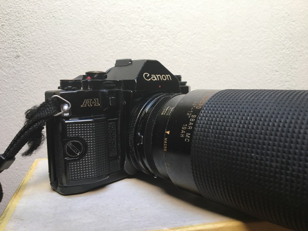 O material fotográfico compreende diversas máquinas avariadas, incluindo o corpo quebrado da AT-14 e a coçada A-1, as primeiras digitais, a subaquática, objectivas velhas, filtros, um fole, um flash, um tripé muito antigo, dois ou três rolos ainda por expor, e outros acessórios que me acompanharam e prestaram bom serviço em muitas aventuras, ou em trabalho de campo. A colecção inclui também algumas máquinas completamente manuais que comprei por nostalgia em lojas de velharias. E digo nostalgia porque comprei uma velha Rolleiflex, icónica, semelhante à que o meu pai teve, uma Canon de um modelo antigo, a confiável FTb, uma outra máquina notável, a ZEISS IKON de objectiva retrátil com fole, parecida com a Agfa da minha avó, e uma caixa fotográfica de plástico, quase igual à minha primeira, e que não sei explicar como e quando desapareceu, logo após me terem dado um caixotinho de plástico melhor, uma Bencini Unimatic 404.